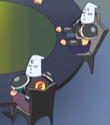 Also known as Masked Man in the English manga[4]. Two leaders of blocks E and F, who are seen at the Hair Hunter meeting. They are shown as silent cloaked members, wearing masks that are similar to those of the Ku Klux Klan.