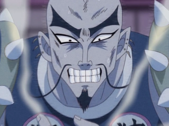 (コデブン): Leader of the Hair Hunt River Block (Fish Expert). Kodebun is able to read the minds of his opponents. He is first encountered when Bo-bobo goes to search for food and brings him back in a bucket, mistaking him for a fish. Despite Don Patch's hajike antics, he is able to read his mind and tricks him into playing with a cucumber. Before Kodebun is able to attack Beauty, he is stopped by King Nosehair, who's sudden appearance causes him to let his guard down, allowing him to be defeated by Bo-bobo.