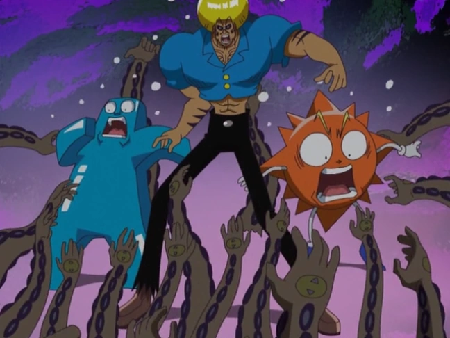 | Giga disables the opponent's attacks and transports them to another dimension where only artistic attacks may be used. | Used Against: Bo-bobo Don Patch Tennosuke | ||||||