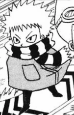 - In the Viz manga translation, the words, "Team Wig Out" are imprinted on the back of his shirt. Later in the manga, "Poppa Clan" is printed on his back.