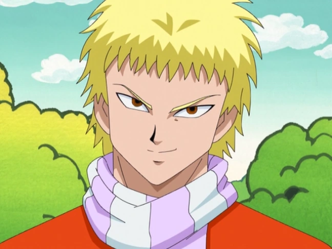 Hatenko is a man with yellow hair and orange eyes. He wears black pants, a red shirt (with "Hajikegumi" (ハジケ組) written on the back of it), and constantly wears a scarf regardless of the weather. He has a rather laid-back and smug back personality. Hatenko never seems to think of his opponents as much of a challenge, unless he is completely sure that they are a threat.