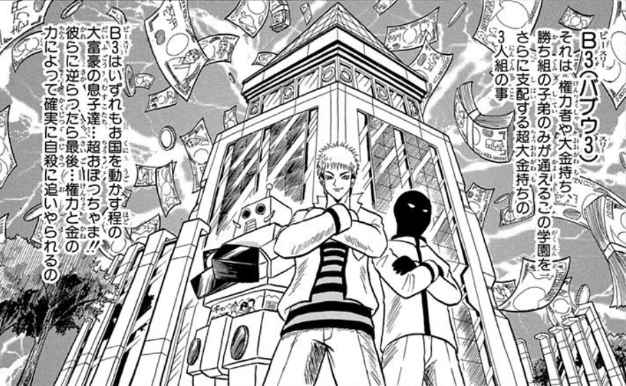 Also known as the Babuu 3 (バブウ3): Three of the richest and most powerful male students at Holy Spaghetti Academy, these boys work for Babuu and use their influence to control the school. The name is a parody of the "F4" boys from Hana Yori Dango.