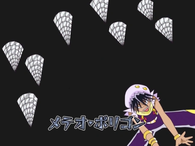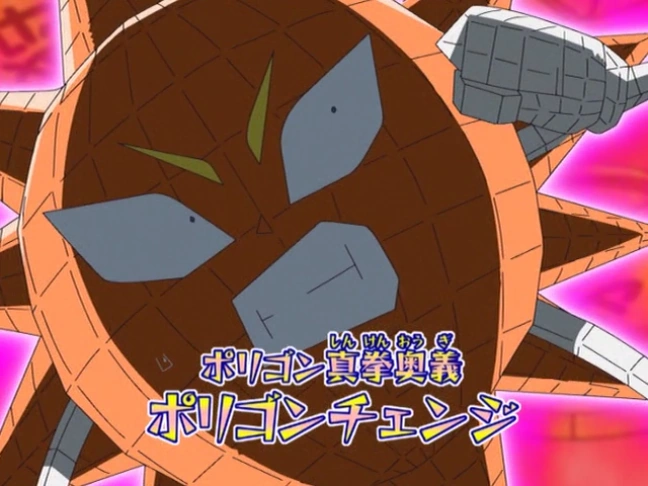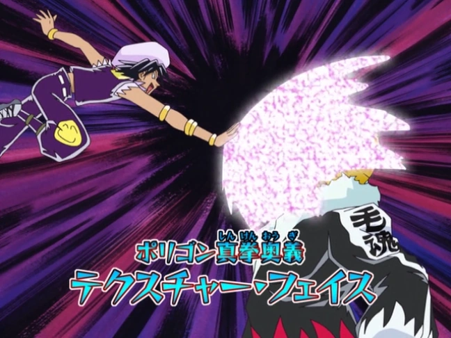 Lambada is the master of "Polygon Shinken" (ポリゴン真拳: Fist of Polygon). His powers center around using polygons to completely turn his enemies into irregular polygons, rendering most of their attacks useless, or to remove a small smiley-face from the opponent to render them defeated. He can also change the appearance of parts or all of his body to disguise himself or change his limbs into a usable weapon. In addition he can create various weapons through his multi-dimensional polygons.