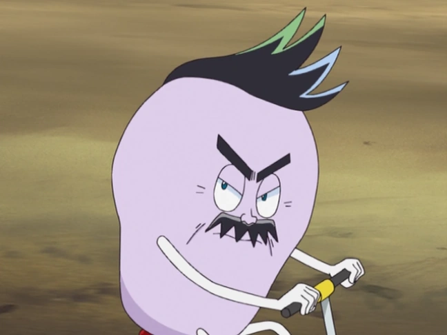 A bean-like grey creature with a mustache, who claims to be a space traveler. He first appears as a resident of Hajike Block, who tries to help the rebels escape from the Keepers.