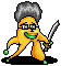 His body is a burdock, and his weapon is a burdock blade. "Eat some burdock"!! (体がごぼうで、武器はごぼうブレード。「ごぼう食えやコラッ!!」)