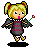 His special attack is the "5 Yen Coin Revolver." Apparently, it doesn't hurt at all. (殺技は「5円玉リボルバー」。ぜんぜん痛くないらしい。)