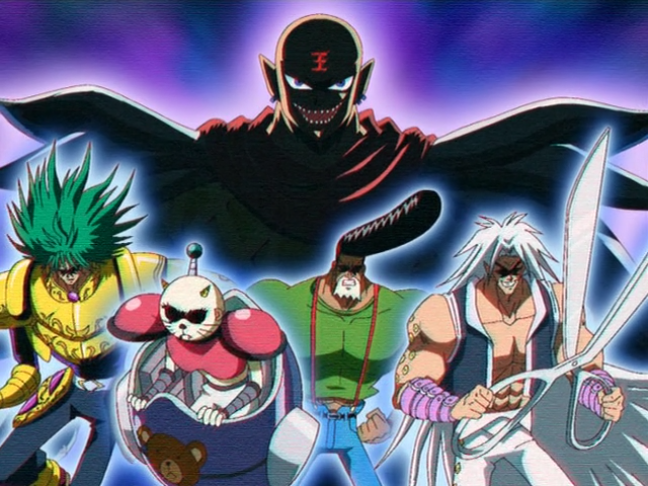 Despite their amazing power, all four members wind up defeated and humiliated by none other than Bobobo-bo Bo-bobo. On another interesting note, Halekulani and OVER temporarily join Bo-bobo's group to fight a common enemy in the form of the Reverse Maruhage Empire.