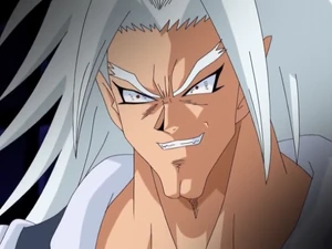 OVER is the ruthless third member of Maruhage Four Heavenly Kings. Unlike many Hair Hunters outside those seen much earlier in the series, OVER takes his job of ripping the hair out of the subjects of the Maruhage Empire extremely seriously and will treat all in his gaze as prey. This harshness for his job includes the treatment of his own teammates, as seen by his scalping of both Gunkan and Kitty Poo after their failures against Bo-bobo and the Hajike rebels. Although OVER can and will attack with little or no notice, he mostly controls his hair hunting activities from an ancient Japanese castle, where he controls a platoon of various ninja-like warriors including The Five Hidden Killers (dub: The Ultimate Five Assassins), who themselves are known for their stealth and abilities. He has noticeably long white hair and eyebrows with pointy ears and long chin. He wears a short black jacket that reveals his chest and white pants. It is revealed that OVER is 25 yrs old, which for some reason is three years younger than Torpedo Girl.