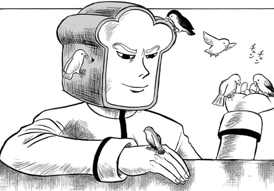 Initially, Bread-chan appeared on top of the school, feeding some birds with pieces of his head (up to now, his status as one of the B3 remains unknown.) Later, after the other two B3 members have been defeated, Bread-chan is confronted Bo-bobo's group, but he tries to his way out of fighting Bo-bobo's group. Their determination to find Heppokomaru forces him to fight and reveal the abilities of his "Fist of Bread". Eventually, the ware of battle reveals Bread-chan as a poor boy without money, faking his way through school with the impression of being rich. After his defeat, Plain Bread finally decides to tell them about where Heppokomaru (and Babuu) were.