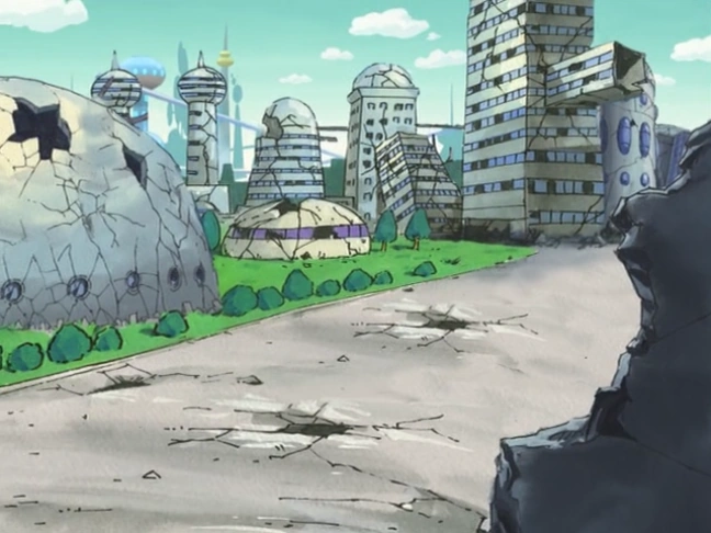 The hometown of Heppokomaru, Puppuu City was destroyed by Gunkan's forces. With the city in ruins, the civilians most likely evacuated, and the city now serves as the location of Gunkan's floating fortress, the Pomade Ring.
