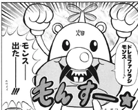 At first, Kamara seems impossible to defeat. One at a time, the rebels try to hit him, but none of their attacks hurt him. This pattern continues, until Bo-bobo reveals his new and improved "Super Jacket". But even after the afro warrior releases a string of hajikelist attacks and finishes by whipping Kamara with his armpit hairs, Kamara gets angry and transforms into Monsu. Though Monsu appears harmless, it quickly changes into a gigantic, metallic dragon, powerful enough to keep even the newly powered-up Bo-bobo on his guard! The dragon manages to stall the rebels long enough, so that two of the trains crash at the bottom. Luckily, Heppokomaru arrives just in time to save both Beauty (but not Dengakuman), and incinerates the dragon with one attack. Kamara is forced back into his human form, and meets defeat at the hands of Heppokomaru's new baby form, and is blasted by one large fart.