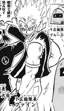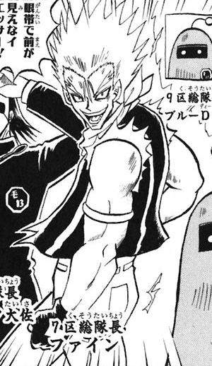 (ファイン): Leader of the team guarding "South Rinse Tower" and the general of the 7th district of the Hair Kingdom. His abilities in "Biryūshi Shinken" (微粒子真拳; "Fist of Particles") allows him to control the tiniest building blocks of the world, letting him create anything he feels like. Using his abilities on behalf of Bi-bibi, he chooses to use them to destroy the opposing members of the Hair Kingdom through a "Keshi Keshikeshi battle" (a four-on-four decisive battle) involving rotating one-on-one combat, but does not care for sacrificing allies if necessary. Bububu-bu Bu-bubu uses one of her secret techniques to allow Bo-bobo to perform three Shinken to stop him: Onara Shinken, Moemoe Shinken and her own Wakige Shinken (Fist of Armpit Hair), which she herself taught him!