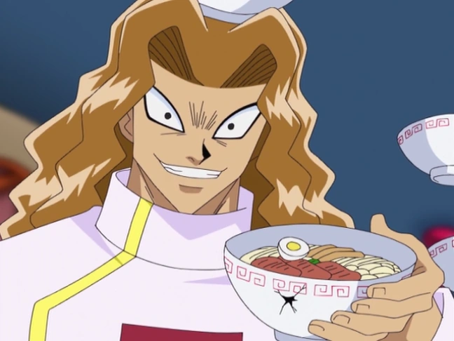 (三千年, Sanzennen): Former O-Block Leader and the only competent member of the Merry-Go-Round attack squad, he fights with the secret technique from three-thousand years of Chinese history: flying bowls of ramen. While he is the only one of his trio on the Merry-Go-Round that fights, he easily falls by a team effort of Softon, Hatenko and Torpedo Girl.