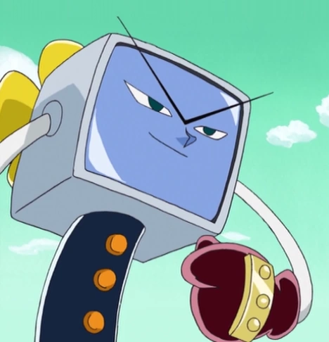 (スターセイバー, Sutā Seibā)/Freak-O-Vision (English dub)/Star Saver (English manga): The former leader of P-Block, he's a walking TV monitor with a fan on his back and boxing gloves on his fists. His abilities include a powerful punch as well as the ability to transform himself and his allies into sci-fi versions of themselves.
