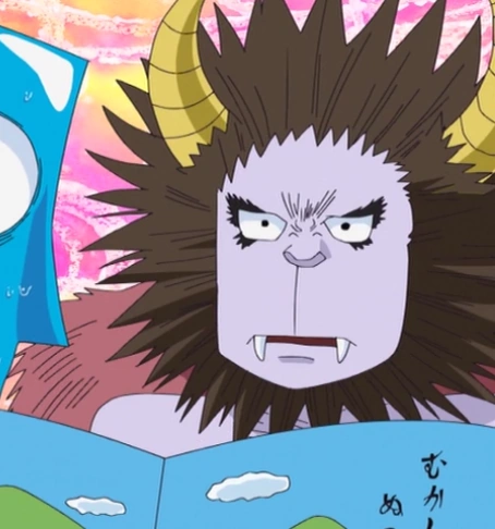 (覇凱王, Hagaiou)/Baron von Horny: A creature who great resembles Haou of the Three Prison-Murderer Brothers. Both are green ball creatures with black curly hair, but while Haou has two small horns on his head, Haigaou has three horns, the two side horns much larger than the center horn. It is possible that he is an ancestor of the brothers, and have similar names, but any link between them is open to theory.