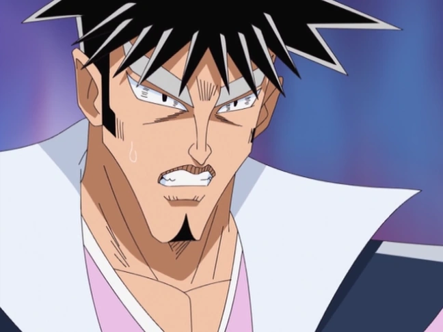 (イシカワ・ゴエモン, Ishikawa・Goemon)/Roman Samurai: First introduced as "Romantic You" (浪漫貴公, Roman Kikō): Ishikawa Goemon serves as the former R-Block leader. He's a strange samurai-like warrior first seen in the Hell Area of "Life or Death Triple" (a giant coin machine) of the Former Maruhage Empire's theme park. He easily dispatches Tokoro Tennosuke (who makes his way back into the arena not too much later), but is eventually forced to fight Don Patch, who easily guesses his true identity. Just to humiliate him further, Don Patch turns Goemon's "Fist of Strange Animals" against him.