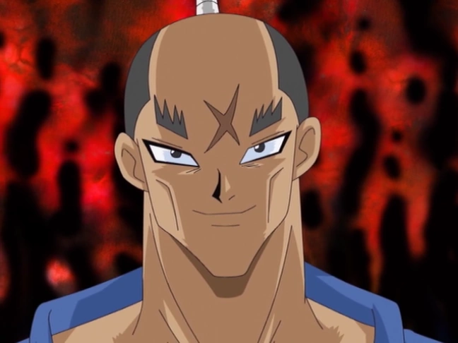 Haigaou serves as the Former Q-Block Leader, and is seen with Jeda the Wind God and Raparapa in the "Ice Mecha Ring". He controls a giant frog mech that can transform into an elephant during the match. However, he and Raparapa prove to be not even a hindrance to Bo-bobo and the others, leaving only Jeda to keep them at bay. This all changes when Bo-bobo and Don Patch fused into PatchBobo, who easily destroys the entire arena. Afterwards, PatchBobo takes Haigaou's lunchbox and turns its contents into weaponry. PatchBobo then fuses Haigaou and Jeda together into a hodgepodge being with Hagaiou's body and Jeda's face. After one final strike from two King Nosehairs, the trio is defeated and Haigaou and Jeda defuse while falling unconscious.