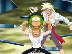 The Terrible Triplets Versus the Wiggin' Trio! (Japanese: 決戦!獄殺3兄弟VSハジケトリオ!チームワークはどっちが上? Decisive Battle! The Three Prison-Murderer Brothers vs. Hajike Trio! Which Has Better Teamwork!?) is the thirty-ninth episode of the Bobobo-bo Bo-bobo anime. It was first broadcast in Japan on December 11, 2004, and in the United States on August 5, 2006.