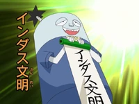 (インダス文明, Indasu Bunmei): A firecracker dressed in ancient Japanese garb, is the quiet one (compared to his partners) who fights with a sword like a samurai and can open up his body to reveal something unexpected to assist him.