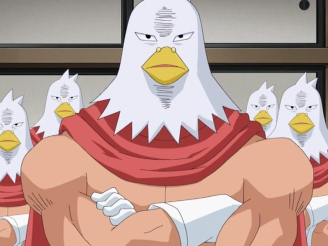 (バビロン案内隊, Babiron An'nai): A absurdly large group of men wearing bird masks and capes, they serve as the tourguides to the Babylon realm. However, all of them are nonsensical beings, who aren't that useful as tourguides. Instead, they seem more interested in assisting in hajikelist gags. A good portion of them were hatched from Bo-bobo's afro.